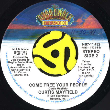 カーティス・メイフィールドがRSOから移籍したアルバム"Love Is The Place"からのシングル・カット。
