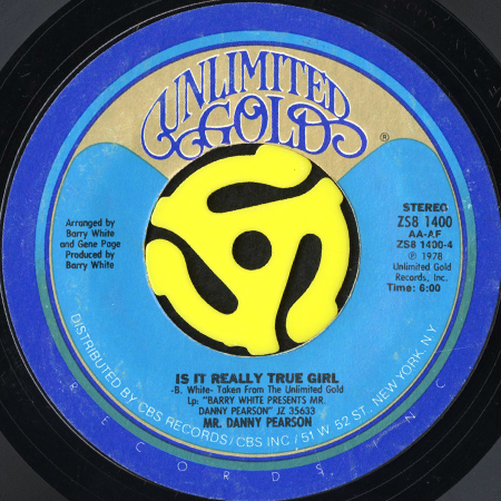 バリー・ホワイトがUnlimited Goldの最初のアーティストとしてサインした口髭付きティーンネイジャー・シンガー、ダニー・ピアーソンのアルバム"Barry White Presents Mr. Danny Pearson"からのカット。