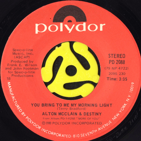 ALTON McCLAIN & DESTINY / YOU BRING TO ME MY MORNING LIGHT (45's) [PD 2088]