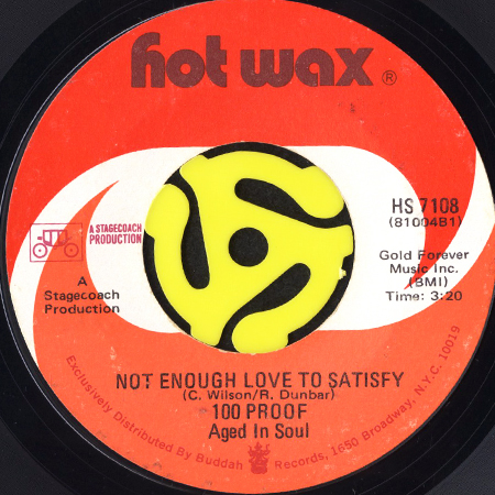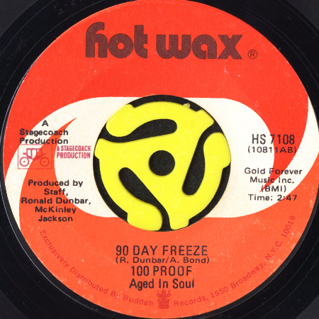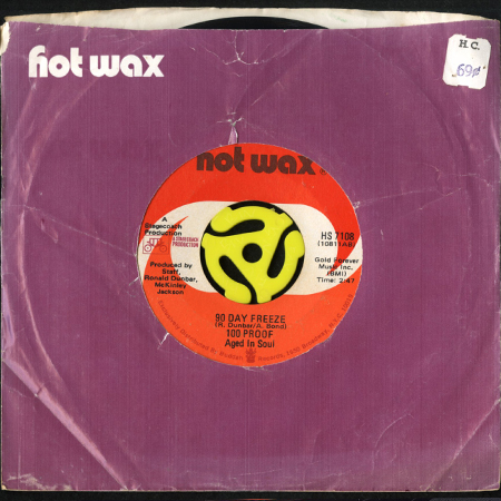 100 PROOF AGED IN SOUL / 90 DAY FREEZE (ON HER LOVE) b/w NOT ENOUGH LOVE TO SATISFY (45's) [HS 7108]