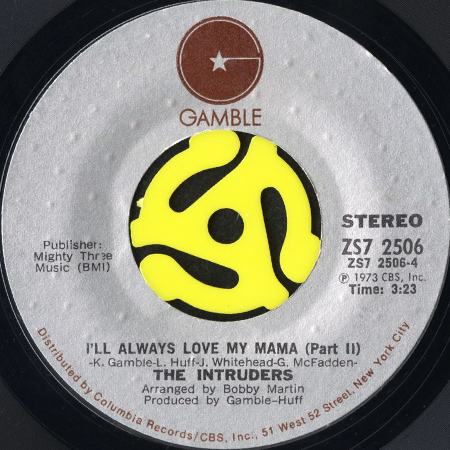 THE INTRUDERS / I'LL ALWAYS LOVE MY MAMA (45's) [ZS7 2506]