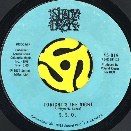 "Faded Lady"でもオナジミ、ベルギー/USコネクションのThe Soul Sensation OrchestraことS.S.O.オーケストラのアルバム"Tonight's The Night"からのタイトル・カット。