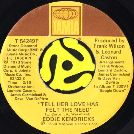 EDDIE KENDRICKS / TELL HER LOVE HAS FELT THE NEED b/w LOVING YOU THE SECOND TIME AROUND (45's) [T 54249F]