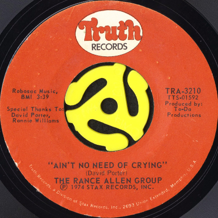 THE RANCE ALLEN GROUP / AIN'T NO NEED OF CRYING (45's)