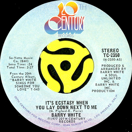 BARRY WHITE / IT'S ECSTASY WHEN YOU LAY DOWN NEXT TO ME (45's) (VINYL PRESS) [TC-2350]