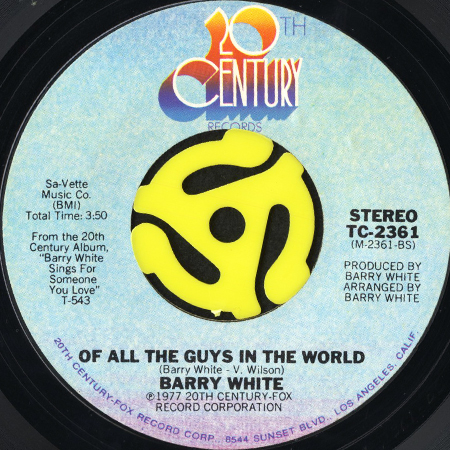 愛の伝道師、バリー・ホワイトの名作アルバム"Barry White Sings For Someone You Love"からのカット。