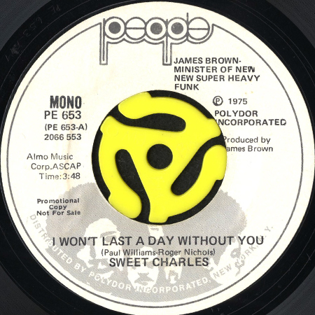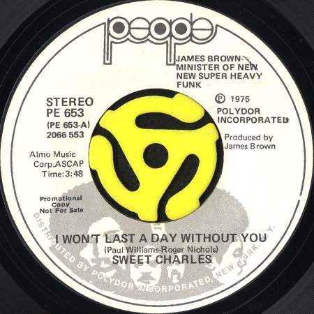 SWEET CHARLES / I WON'T LAST A DAY WITHOUT YOU (45's) (WHITE PROMO) [PE 653]