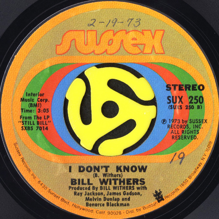 BILL WITHERS / KISSING MY LOVE b/w I DON'T KNOW (45's) [SUX 250]