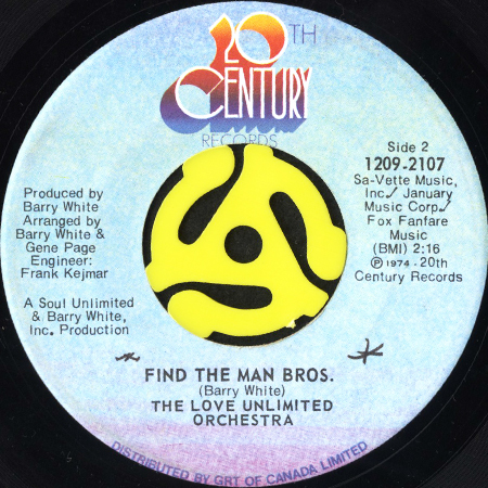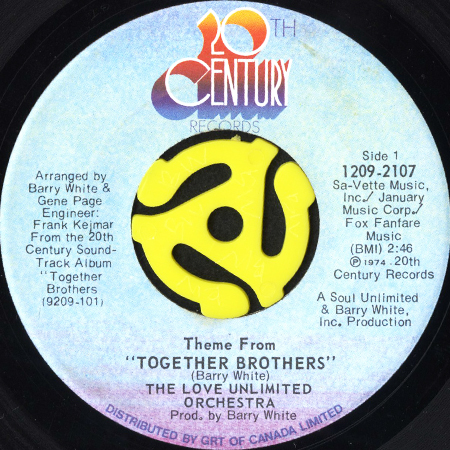 THE LOVE UNLIMITED ORCHESTRA / THEME FROM TOGETHER BROTHERS b/w FIND MAN BROS (45's) (CANADA) [1209-2107 (TC-2107)]