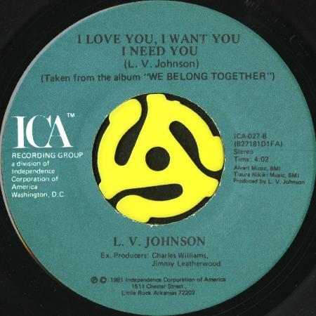 L.V. JOHNSON / I DON'T REALLY CARE b/w I LOVE YOU, I WANT YOU, I NEED YOU (45's) [ICA-027]