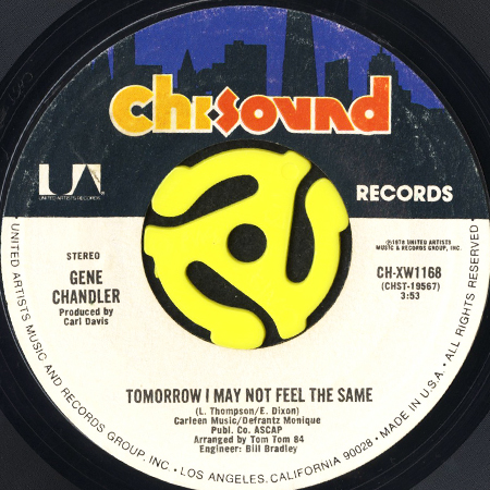 GENE CHANDLER / TOMORROW I MAY NOT FEEL THE SAME (45's) [CH-XW1168]