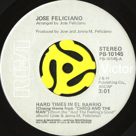JOSE FELICIANO / HARD TIMES IN EL BARRIO b/w CHICO AND THE MAN (45's) [PB-10145]