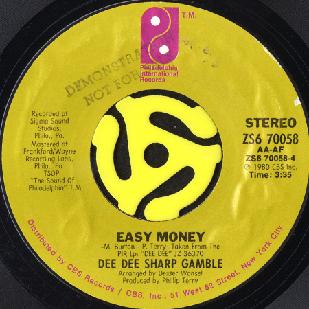 Dexter WanselのアレンジにMFSBのバッキングが光る"Easy Money"は、Todd Terjeもリエディットしたファンク・ダンサー〜ミッドブギーでカッコいいです!