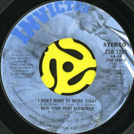 NEW YORK PORT AUTHORITY / I DON'T WANT TO WORK TODAY b/w GUESS I'M GONNA CRY (45's)